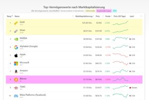 Gemeinsam stehen Gold und Silber heute an der Spitze. Sie sind die Top 2 Vermögenswerte unserer Zeit. Kein Unternehmen, keine Währung, kein digitales Versprechen hat eine vergleichbare Historie und Begrenzung. Die Frage ist nicht mehr, ob diese Preise gerechtfertigt sind. Die Frage ist, was dieses Niveau über den Zustand unseres Geldsystems aussagt.